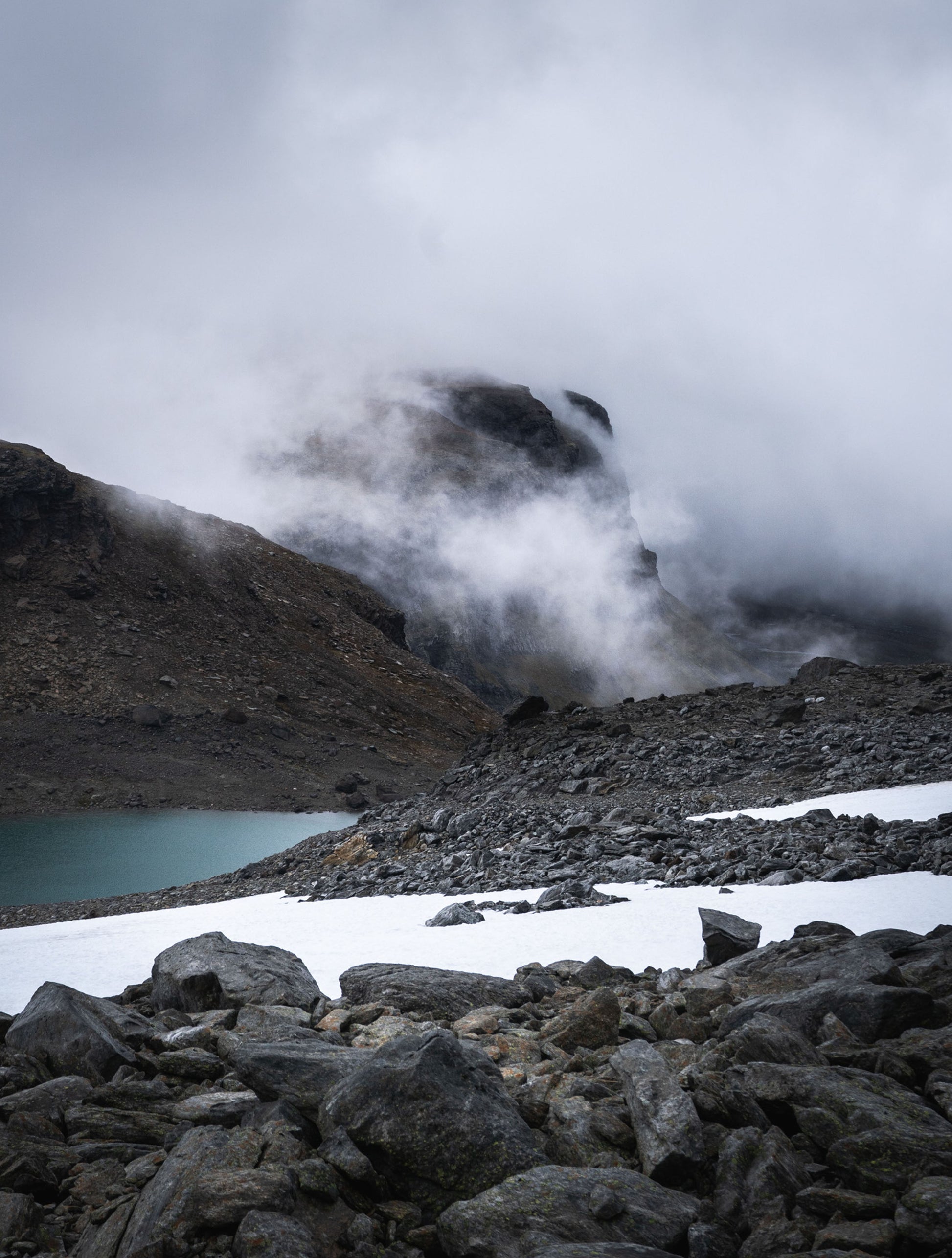Inside Vindelfjällen's Viterskal pass lies the blue glacial lake of Måskonåive – guarded by fog, relentless gales of wind and a mountain of rocks.